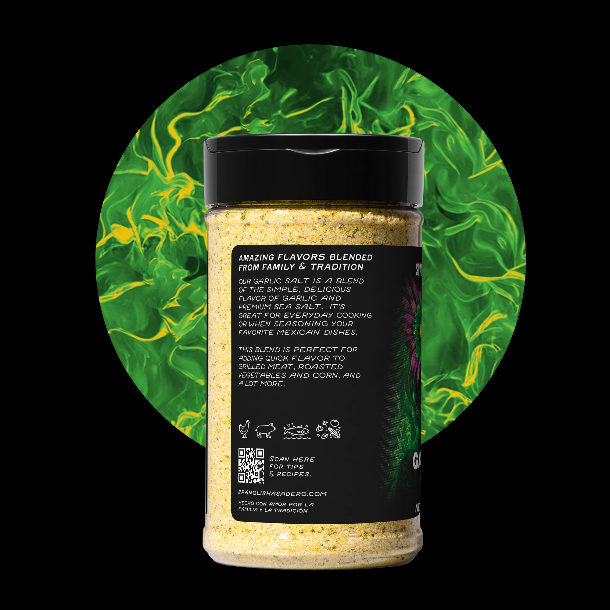 Our Garlic Salt is a blend of the simple, delicious flavor of garlic and premium sea salt. It’s great for everyday cooking or when seasoning your favorite Mexican dishes. This blend is perfect for adding quick flavor to grilled meat, roasted vegetables and corn, and a lot more.